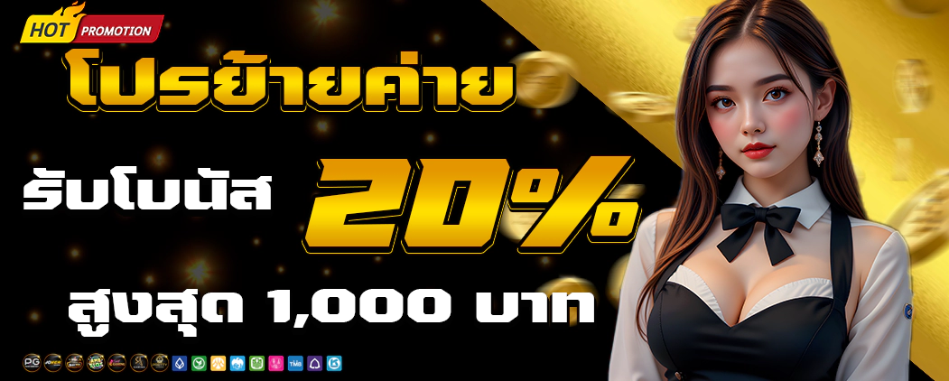 รับโบนัส 20% สูงสุด 1,000 บาท ( โปรโมชั่นนี้จำเป็นจะต้องฝากขั้นตํ่า 100 เท่านั้น)